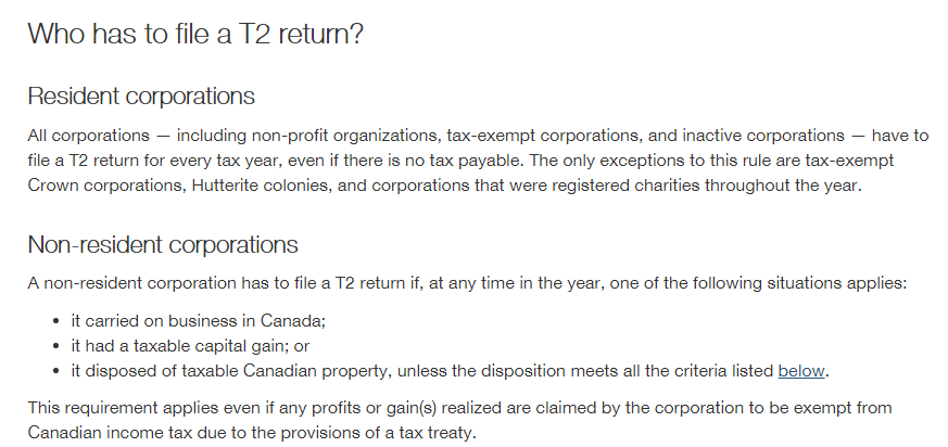 The T2 Corporate tax return is required to be filed by all the corporations’ resident of Canada.