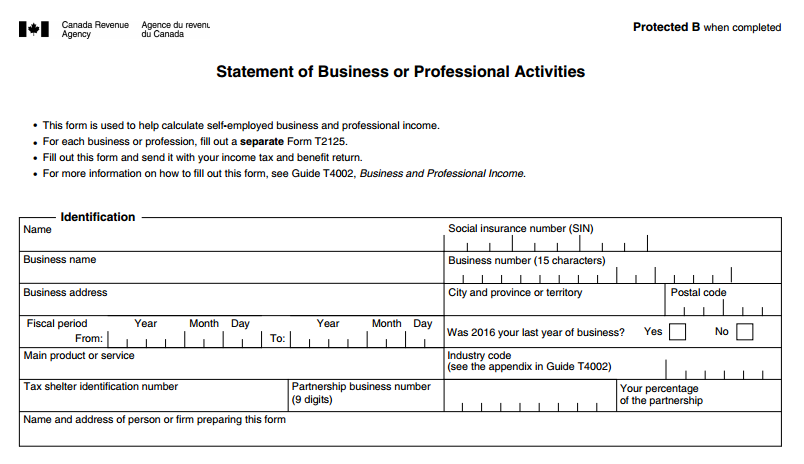 If you are self employed or run your own small business that is not incorporated, you are required to file T2125- Statement of Business Activities with your T1 tax return for reporting your business income.